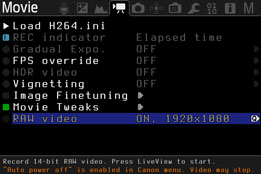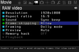 拍摄RAW视频对于储存卡的要求是非常严格的,由于每一帧都是未压缩的RAW原始数据,所以在1920x1080分辨率下可达4MB/帧。这意味着24fps的RAW视频就需要95MB/s左右的写入速度才可以完成拍摄。如果使用“裁切模式”拍摄高于全高清的片段(如2K-3.6K),将对卡速具有更高的要求。